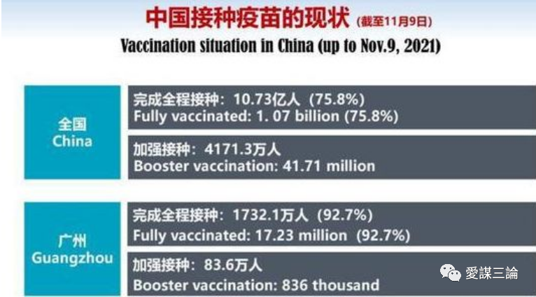 2021年11月上旬,广州接种两针达92.7%,广州接种第三针数十万接近百万,当然广州接种仍在持续增加和扩大。钟南山说全民接种建立群体免疫是恢复常态前提,大声疾呼开发抗体和小分子化合物药物讲的就是西药。