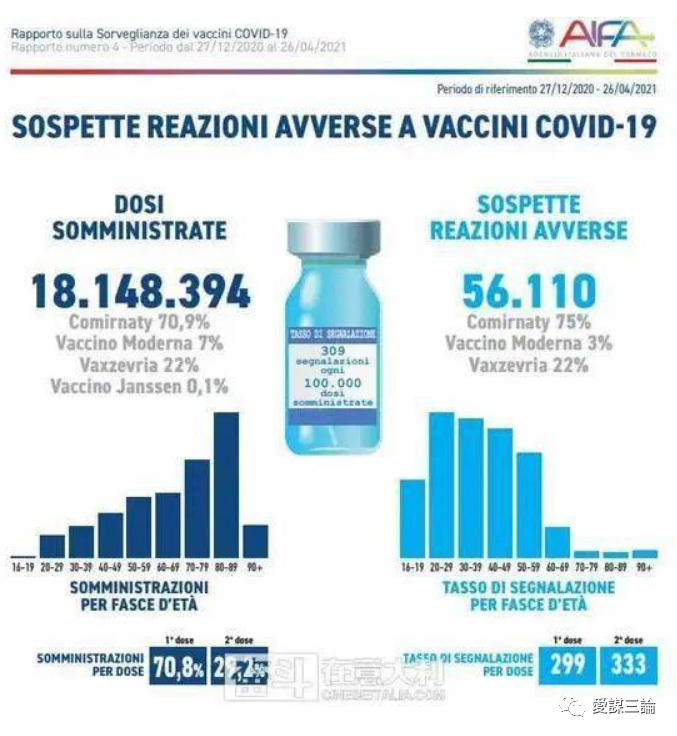 比如欧盟国家的意大利,2020年12月27日至2021年4月26日期间,意大利接种1800多万剂疫苗。