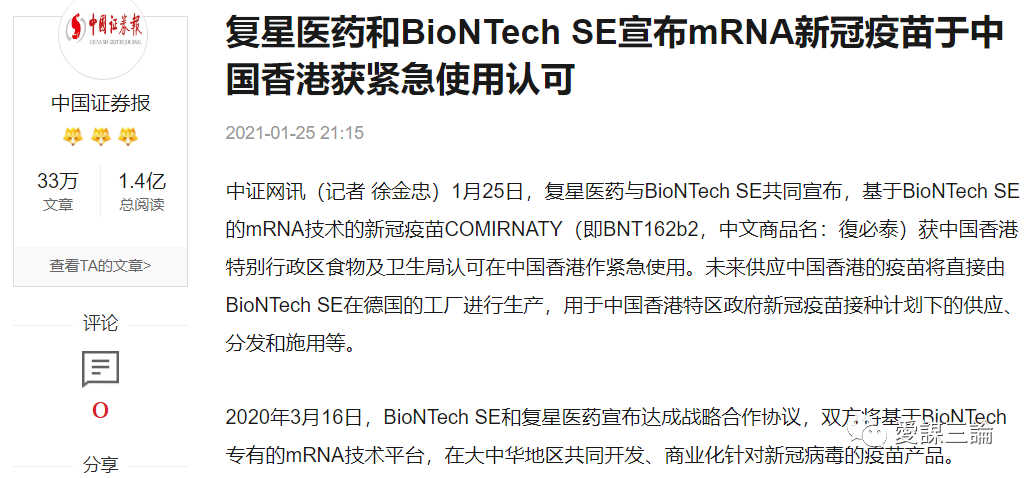 香港地区有复星复必泰紧急授权,为文章安全计,接种数据在此不做介绍,大家可以查询相关公开报道。
