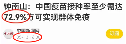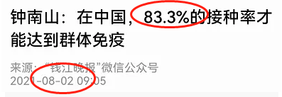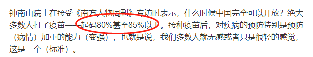 五月份到十月份,钟南山院士对疫苗接种实现群体免疫数据一变再变。国外专家对疫苗不敢打保票,国内有些人比他们师傅的胆子大得多。