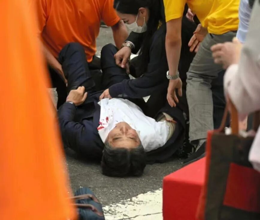 安倍晋三胸部中枪倒地,已经没有生命体征