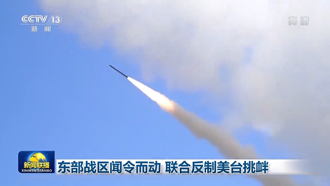 【15:54】央视发布导弹发射照片及落地位置示意图。央视播报:「8月4号13时许,中国人民解放军东部战区陆军部队在台湾海峡实施了远程火力实弹射击训练,对台湾海峡东部特定海域进行了精确打击,取得了预期效果」。